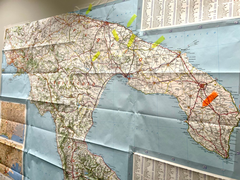 Vi har hengt opp Syd-Italia-kartet på veggen hjemme, og sett ca 50 YouTube videoer. Nå mangler bare å være i Italia – med start i Napoli onsdag 2 april. Sees ved Avis skranken om kort tid!!!