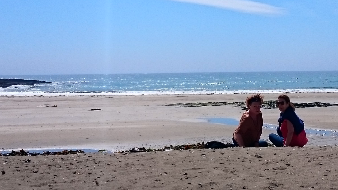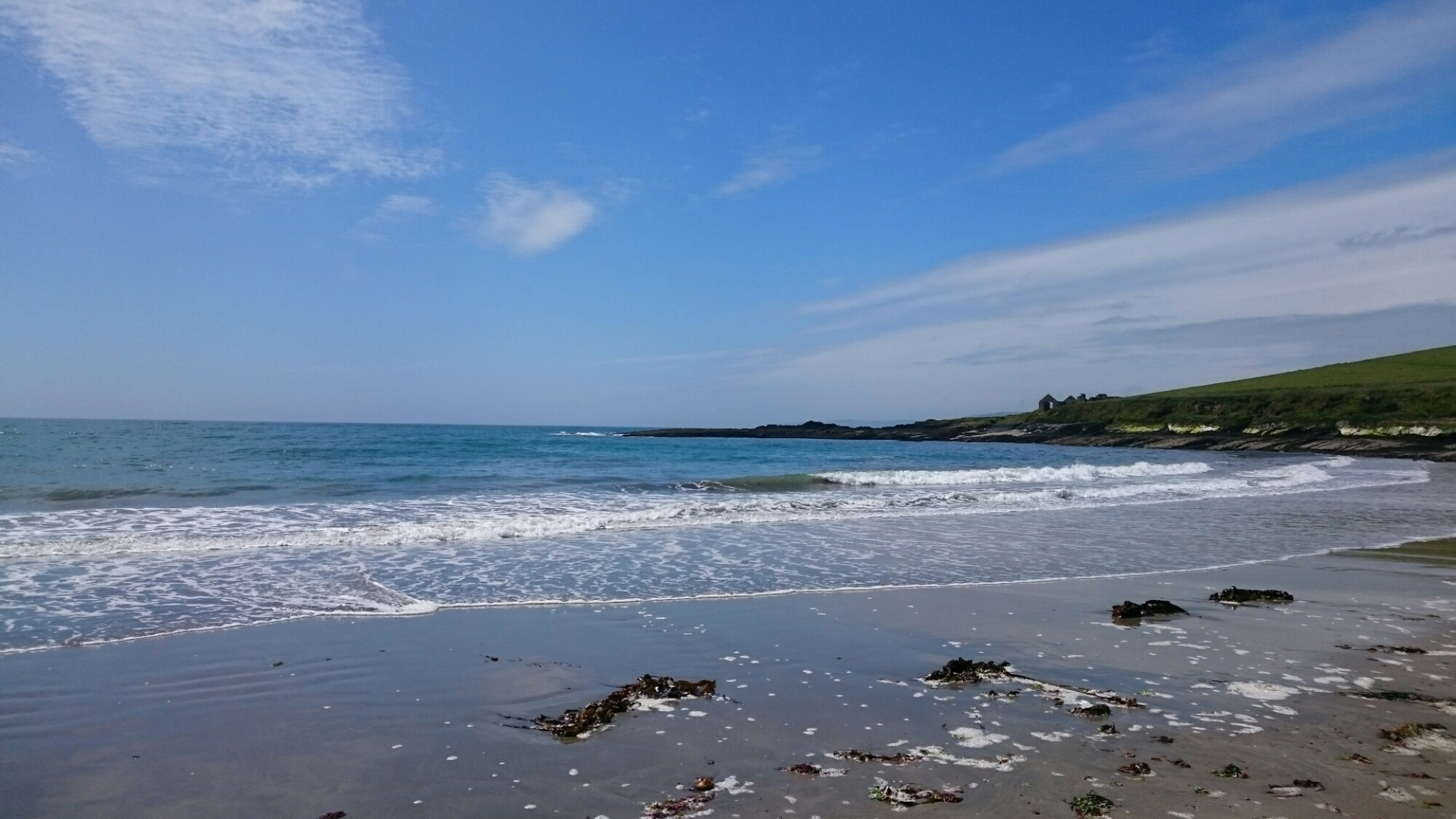 Nina Harte bor i en bitte liten cottage, med en deilig walk ned til Howes Strand.  Solen skinner og steker, faktisk.  I London er det 33 grader på Wimbledon – her bare noen og tyve.  Nå har vi spist lunsj på Dillons i Timoleague – snart er det drink med Nina på Pink Elephant og dinner på Dillons. Slow life, med mange gode måltider. Landskapet er fortsatt umulig å bli mett på!