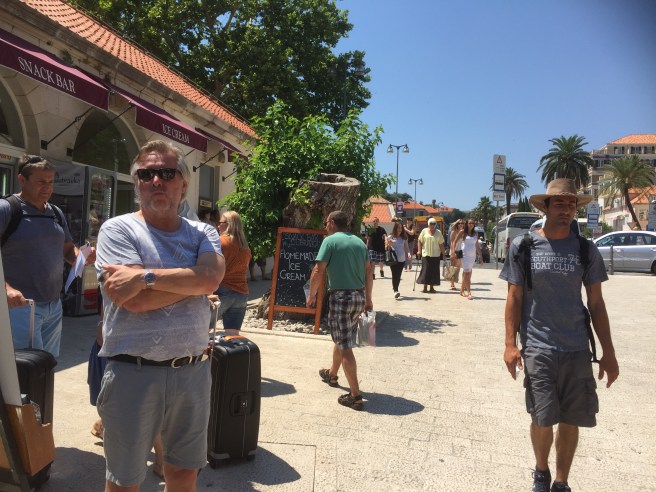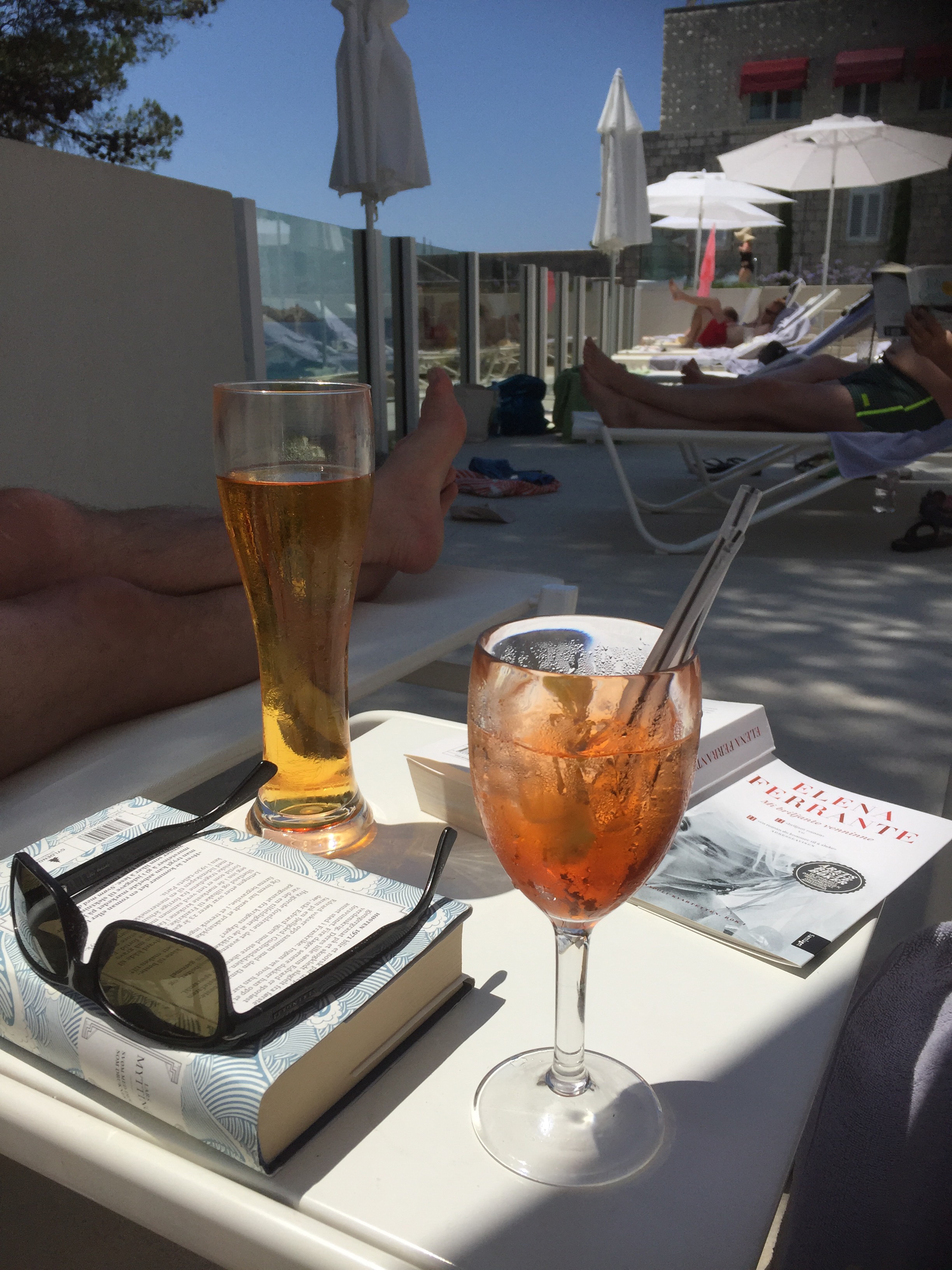 Idag er det rolig utsjekk – før vi tar en siste caferunde. Med bok,  avis og smarttelefon i lomma.